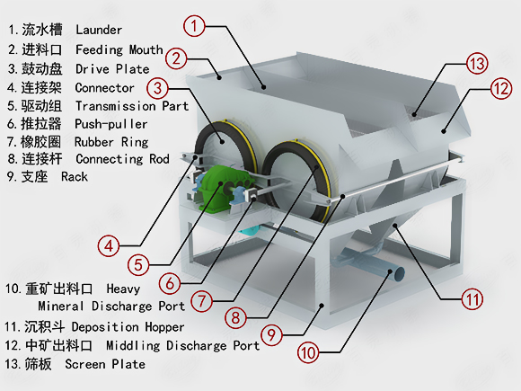 大顆粒跳汰機(jī)也被成為AM-30跳汰機(jī),入選粒度可達(dá)30毫米,具有上、下同時排料,連續(xù)工作的選礦條件,是目前成功應(yīng)用較為廣泛的跳汰選礦之一。大顆粒跳汰機(jī)是由馬鞍山礦院設(shè)計研發(fā)的,昆重礦機(jī)批量生產(chǎn),最初設(shè)計主要用于處理赤鐵礦,現(xiàn)已發(fā)展應(yīng)用到赤鐵礦,褐鐵礦,鏡鐵礦,錳礦,重晶石,螢石,天青石,汞礦,銻礦等礦物選礦,選礦效果良好,獲得眾多客戶的一致認(rèn)可和好評。
